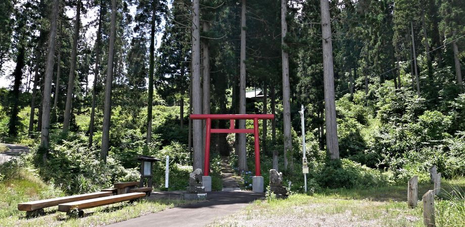 この神社は、秋田自動車道・西仙北SAの西南西4.5km程の辺り、釜ノ沢の街外れに鎮座しております。