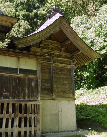 現神社は旧下小阿仁村鎌の沢神社である。昭和の初め屋根をトタンに葺き替え昭和35年長床を新築す。昭和55年幣殿を増改築す。