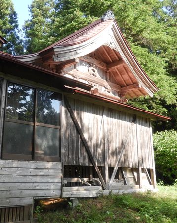 この神社は、秋田自動車道・五城目八郎潟ICの東8km程の辺り、六郎沢の街外れに鎮座しております。