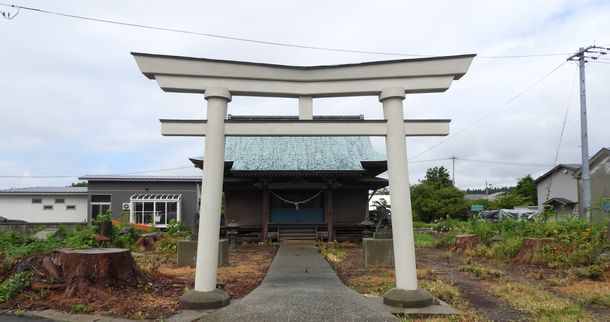 この神社は、JR奥羽本線・鶴形駅の北北東2km程の辺り、四日市の街中に鎮座しております。