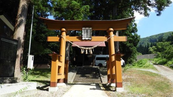 この神社は、東成瀬村役場の東3.5km程の辺り、岩井川荒沢の街外れに鎮座しております。