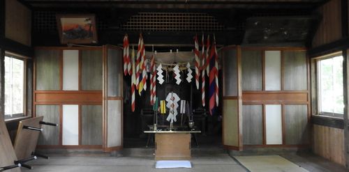 東経140度05分33.89秒、北緯40度02分28.90秒に鎮座。