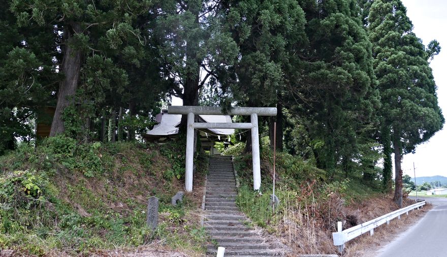 この神社は、JR奥羽本線・北金岡駅の南東6km程の辺り、向台の街外れに鎮座しております。