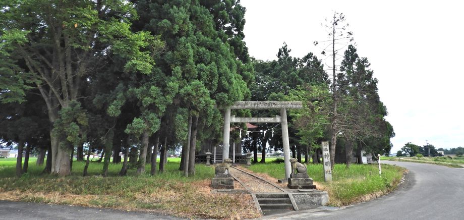 この神社は、JR奥羽本線・後三年駅の西8km程の辺り、餅田の街外れに鎮座しております。