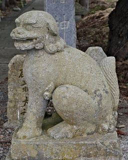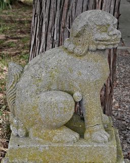 石灯籠に遊ぶ狛犬。拡大写真はこちら。