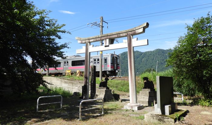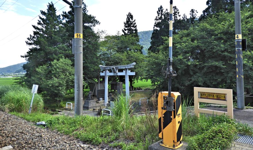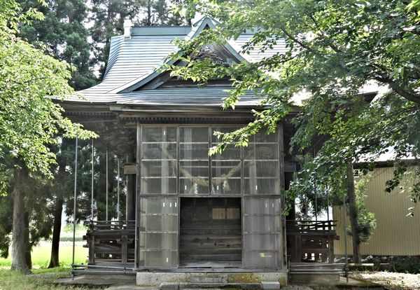 この神社は、JR奥羽本線・三関駅の北400m程の辺り、堂ノ前の街外れ、奥羽本線のすぐ東側に鎮座しております。