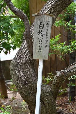 御神木の白梅。令和元年に植樹した白梅の御神木。