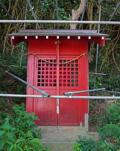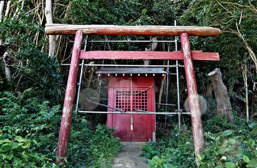 【神社情報・「狛犬小僧」さんより】 銚子電鉄本銚子駅から北東に直線距離で800m程の西宮神社から、更に60m程北側の大きな鳥居の近くに鎮座。倒木から守る為か、それとも倒壊する恐れがあるのか、バリアーで覆われてる稲荷でした。