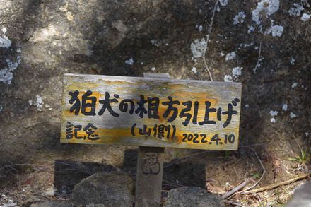 【神社情報・「狛犬小僧」さんより】 平成25年に登った時は存在しなかった左側の狛犬さんが見っかったそうなので追加します。見つけた狛犬さんは崖下からロープで吊り上げたそうです。場所は大方の見当が付いてたのかな。