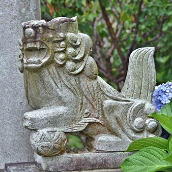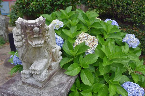 狛犬と紫陽花