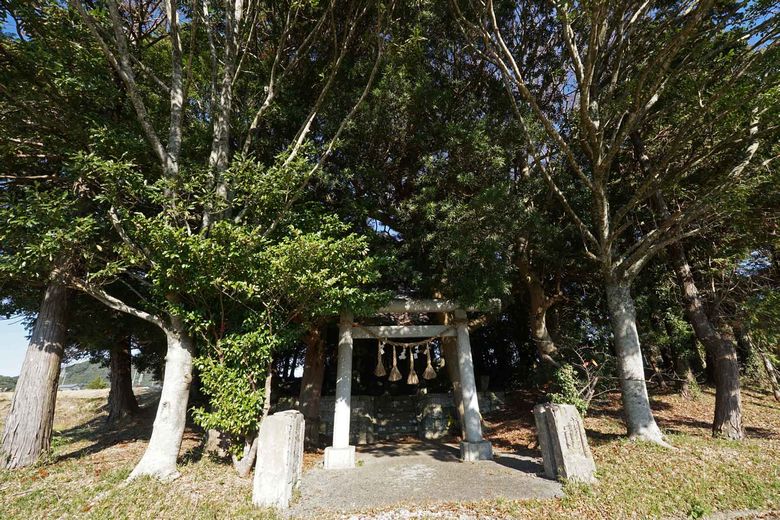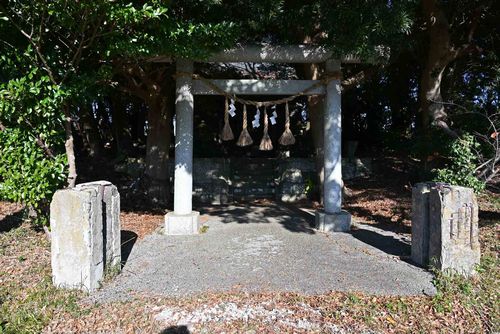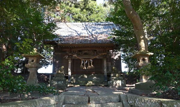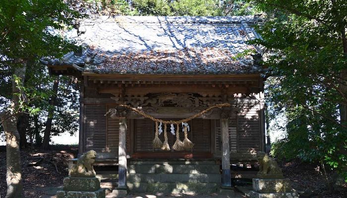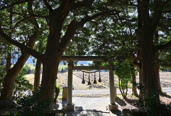 県道34号線と県道181号線が接する田原丁字路から34号線を西に710m進んだらドッグサロンスマイルの手前を左折し、細い道を260m進むと道路右側が神社です。