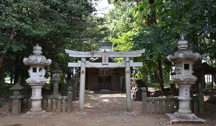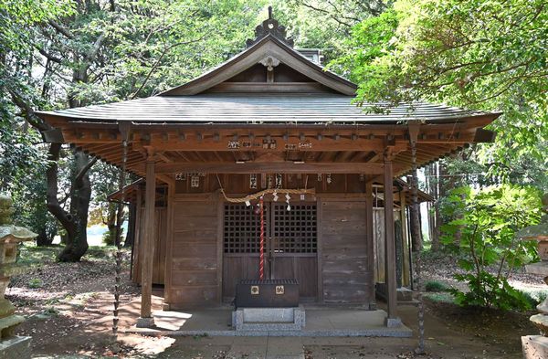 社伝によれば、当社は、中世戦国期の手賀城主である原氏の氏神であったが、手賀城の落城以後は、五重臣の一員である大山家の氏神として奉祀されていたという。後に、幕末の文化十四(一八一七)年九月に、手賀・片山両村によって現在の本殿が造営され、以後、両村の鎮守となった。時の棟梁は手賀の嘉平であった。本殿には多くの彫刻が施され、腰組には十二支、胴羽目板には二十四孝、向拝柱と角柱の桝組上部には振面の龍がみられる。昭和三十九年、拝殿を新築するとともに、本殿には完全な露除けの納屋を施し、昭和四十六年には、従来の茅葺を銅板葺に改修した。