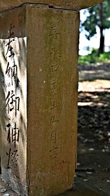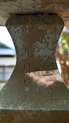 手水舎・天明八戌年(1788)奉納の手水石。これも本殿よりも古い。