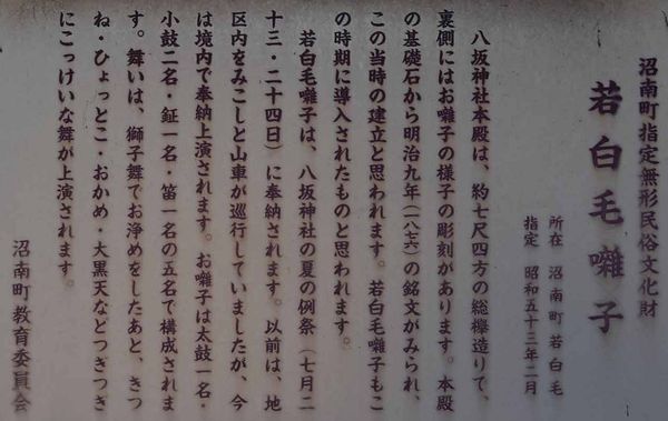 本殿は基礎石から明治九年の銘文が見られ、この当時の建立と思われます。創立時期は不詳。