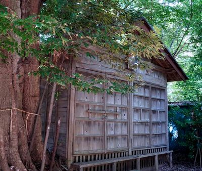 神輿と山車の蔵かな? 昔の映像が残ってないので正確な事は分からないが、これがお囃子など演じる建物か、それとも倉庫かも?