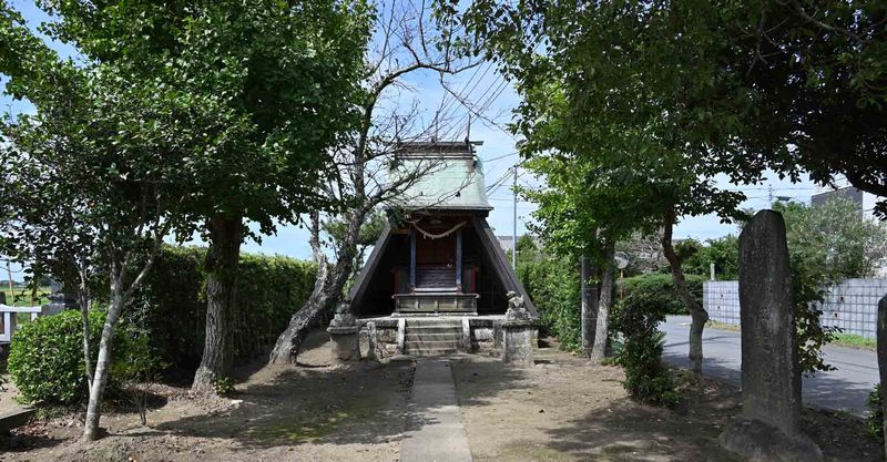 香取市の一番北辺りに位置し、常陸利根川から200m程南側になります。香取市の神社だが、この神社は香取市の北の外れで潮来に近い為か、狛犬さんは潮来の金原石材店に頼んだ様です。しかし潮来ではこの類の狛犬はまだ見ていない。