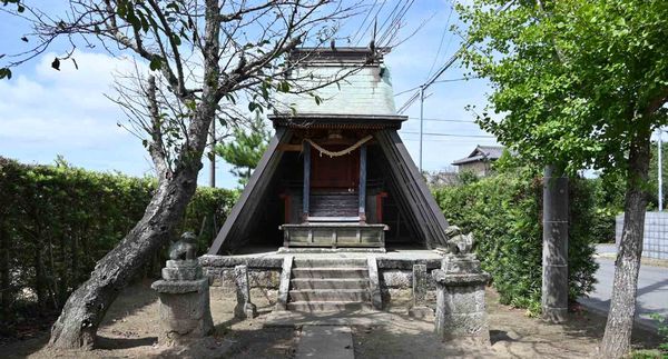 社殿。この辺りに多く見られる覆屋付きの拝殿。筑波山方面からの風を防ぐ目的かな?