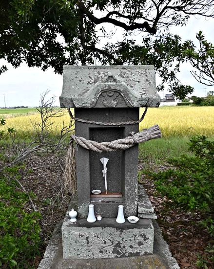 周囲は巨大な水田地帯で今回巡った中では一番ポツンと一軒屋的な僻地の神社でした。この辺りはゼンリンの地図では香取市富田となっているのだが、グーグルや国土地理院によると三ノ分目となっている。しかし石宮には富田村と彫られていた。