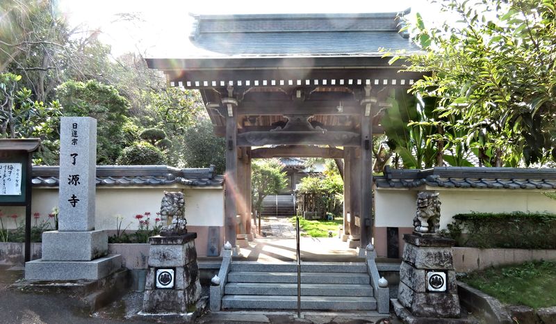 日蓮宗寺院の了源寺は、昌壽山と号します。了源寺は、本行院日圓上人が寛文年間(1661-1673)に開山、三十番神堂の三十番神は嘉永年間(1848-1854)に制作されたものです。入口にかわいい五百羅漢さんがいます。