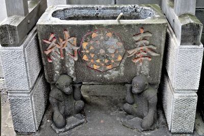 手水鉢を支える猿