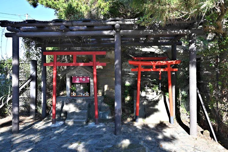 江ノ島の南側にあるバス専用駐車場の入口近くにある聖天島公園の北側に鎮座する神社です。