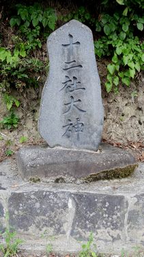 石碑と参道。地図には十二神社と表記されているものもあります。