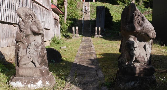 浮彫の狛犬。拡大写真はこちら。