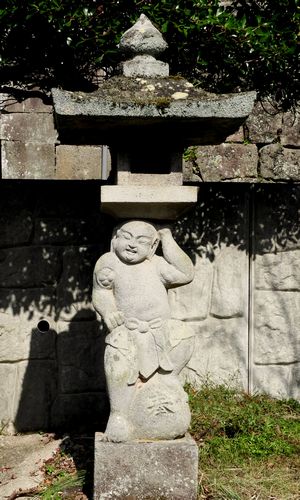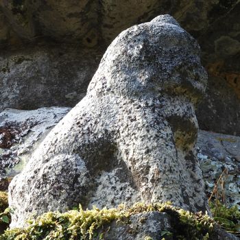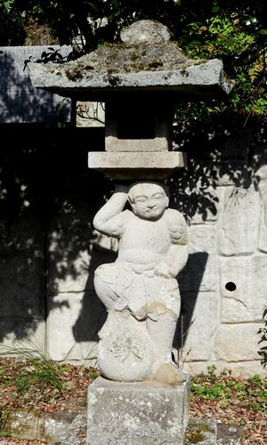 石燈籠を支える狛犬。拡大写真はこちら。
