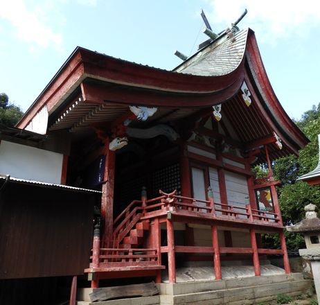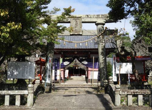 東経131度44分13.30秒、北緯33度33分30.70秒に鎮座。![]()