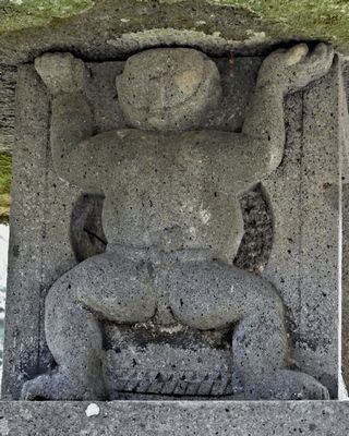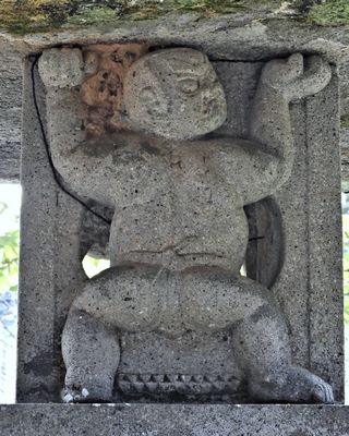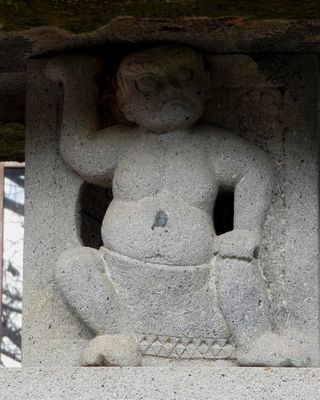 石灯籠と笠を支える力士