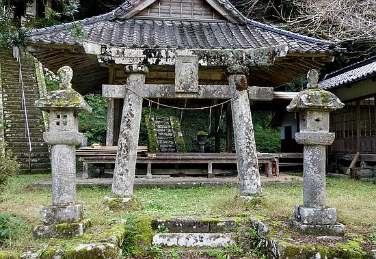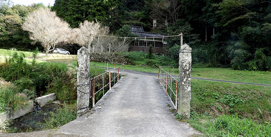 この神社は、東九州自動車道・中津ICの南西6km程の辺り、本耶馬渓町跡田の街外れに鎮座しております。