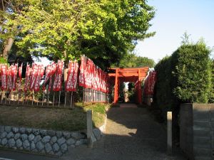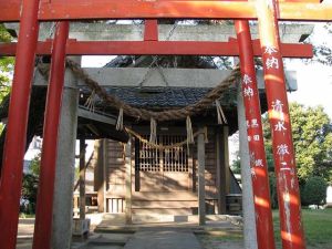この神社は中島2丁目・諏訪神社の境外社の様です。諏訪神社の「返還記念」石碑に「戦後占領軍に没収されていた奥宮と稲荷神社社地が、昭和47年に返還された。」とありました。