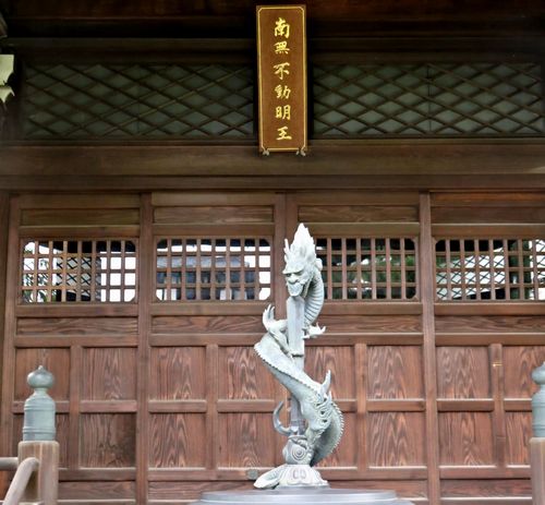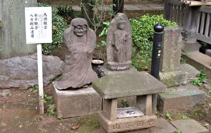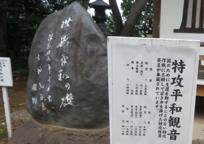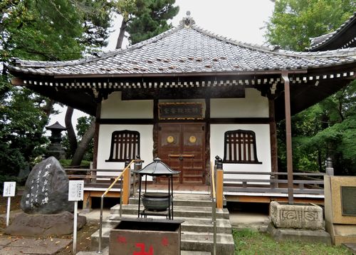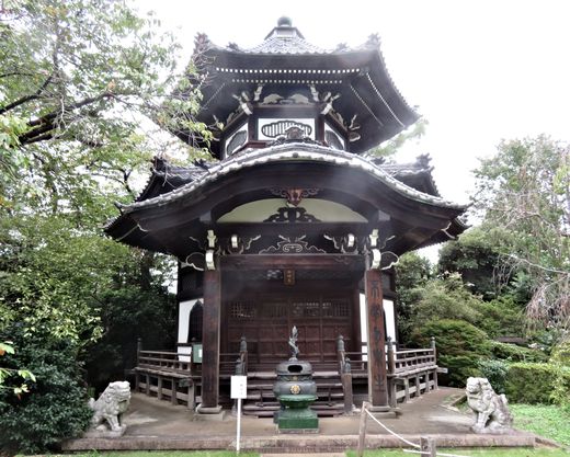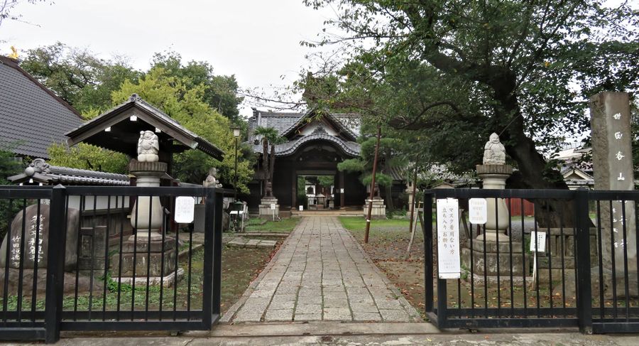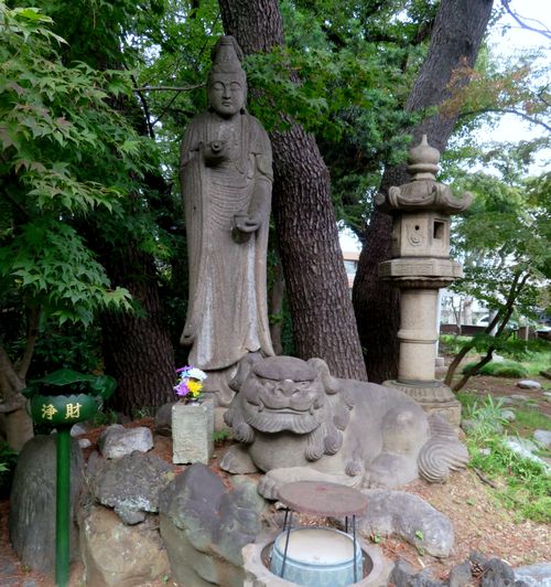 この神社は、東急東横線・学芸大学駅の北西の1.5km程の辺り、下馬の街中に鎮座しております。世田谷山観音寺は戦後にあたる昭和26年(1951年)に創建された、区内では最も歴史の浅いお寺ですが、境内にある観音像などの歴史的に重要なものがたくさんあります。六角堂の中に安置されている不動明王と八大童子(はちだいどうじ)像は、平安時代に活躍した仏師運慶(うんけい)の弟子である康円(こうえん)が鎌倉時代に作成したもの。国の重要指定文化財にも指定されています。康円の作品はこの世田谷山観音寺に安置されているもの以外には、2体しか残っていないようです。本堂には、元々三重県の興昭寺の秘仏であった、聖観世音菩薩(しょうかんぜおんぼさつ)が安置されています。さらにその脇には日光菩薩、月光菩薩龍神様、マリア観音、布袋尊、大黒尊なども安置されており、それぞれ歴史的にとても価値のあるものだということ。釣り鐘は奈良県の極楽寺からきたものです。太平洋戦争で亡くなった方、特に特攻隊で殉職した方を祭ったお堂や石碑が境内にたくさんあります。