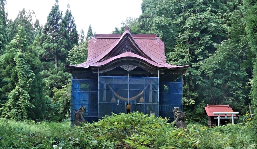 この神社は、上小阿仁村役場の南南東2.5km程の辺り、上ノ山下タの街外れに鎮座しております。