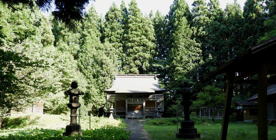 この神社は、秋田内陸縦貫鉄道・合川駅の西南西2km程の辺り、上岱の街中に鎮座しております。