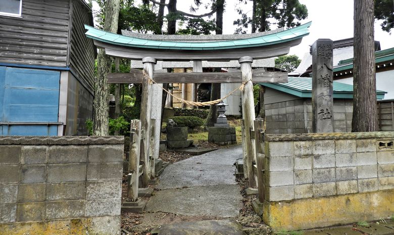 この神社は、JR五能線・鳥形駅の東南東2km程の辺り、八幡下の街中に鎮座しております。