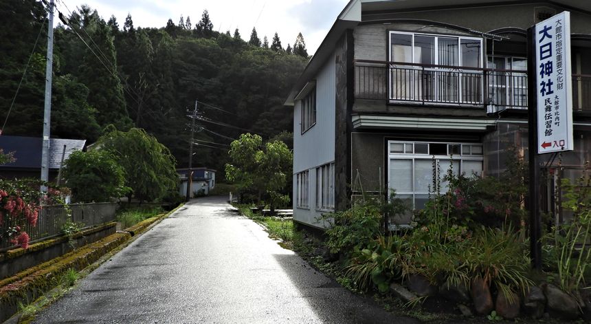 この神社は、JR花輪線・大滝温泉駅の南南西3.5km程の辺り、大日堂前の街外れに鎮座しております。