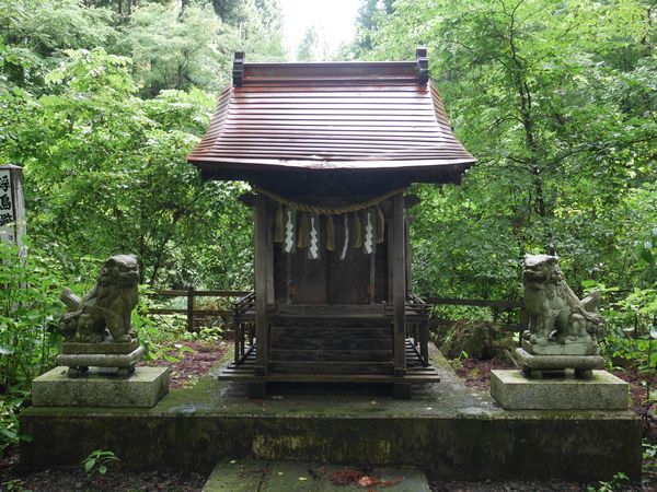 由緒 後方に沼があって中に島があることから浮嶋神社といわれた。紙にお金を包んで沼に投げ入れ吉凶を占った。 大館市役所公式サイト より。