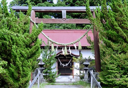 東経140度04分05.33秒、北緯40度04分22.47秒に鎮座。