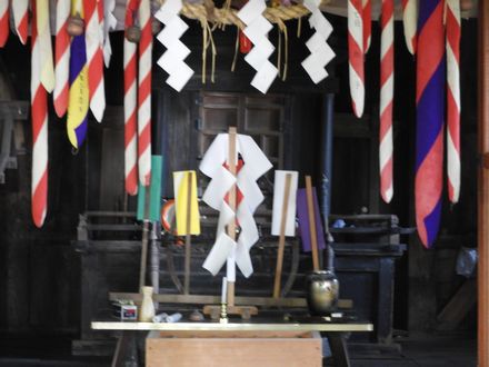 東経140度05分33.89秒、北緯40度02分28.90秒に鎮座。