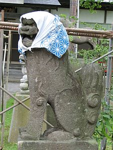 ほっかむり狛犬は如何にも東北らしい。手拭の柄もぴったしのような。拡大写真はこちら。