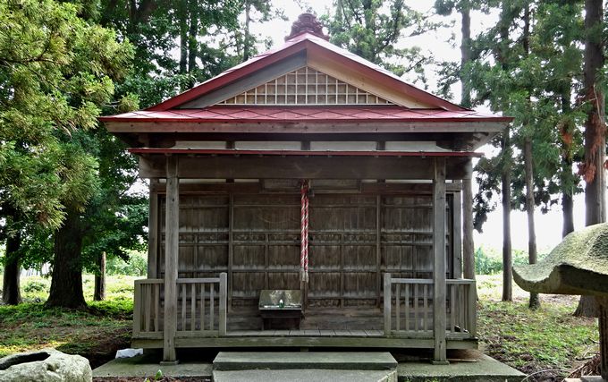 東経140度29分29.62秒、北緯40度39分50.23秒に鎮座。![]()