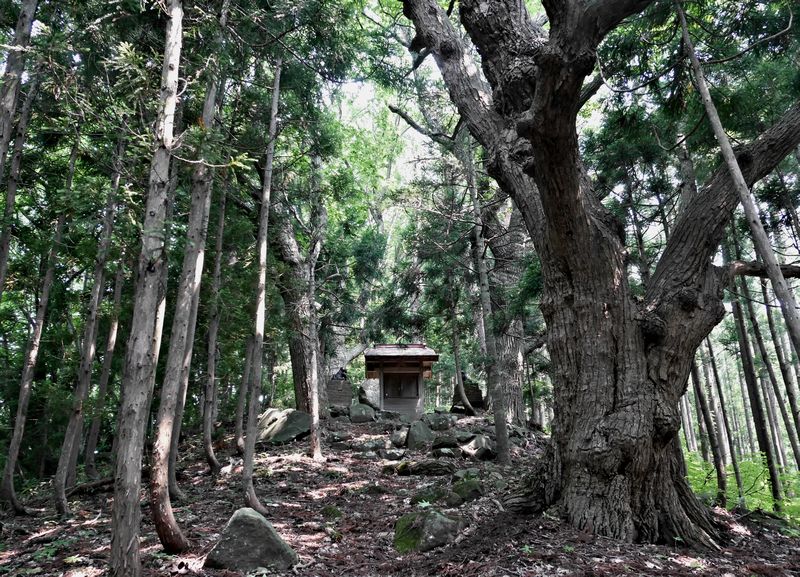 東経140度14分23.68秒、北緯40度44分51.76秒に鎮座。