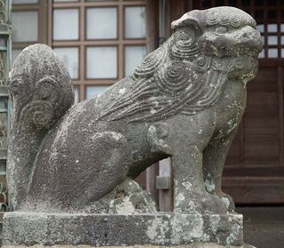 | お堂前の狛犬。拡大写真はこちら。 | |