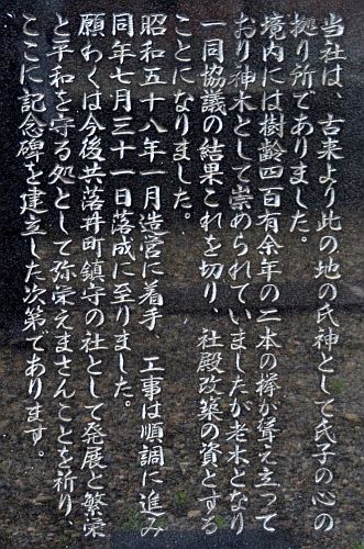 椎名村古市場仝落井、富岡の各部落に各一社宛鎮座す。何れも伊邪那岐尊、速玉之男尊、須美熊夫尊の三神を合祀せる神社にして、拝殿間口四間、奥行三間、社殿間口二間、奥行一間、境内四百九十九坪、氏子四十八戸あり。他の各社とも社殿境内等各相似たり。
