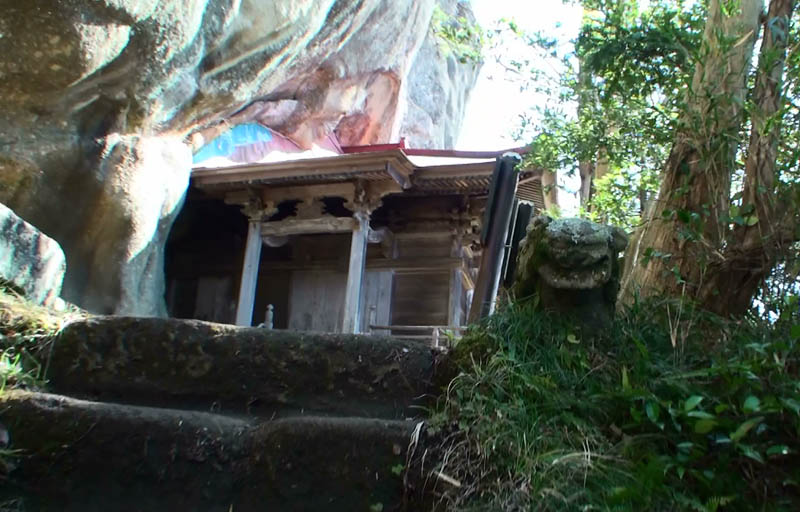 高宕山山頂。明治の神仏分離で観音堂から山頂に運ばれた鉄鍋と青龍権現が鎮座。