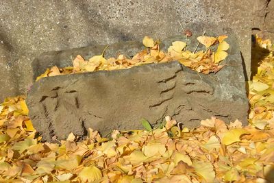鳥居とイチョウ。一週間前は沢山の葉が付いてたそうだが、数日前の強風で殆ど落ちてしまったそうだ。しかし地面はイチョウの葉の絨毯だった。