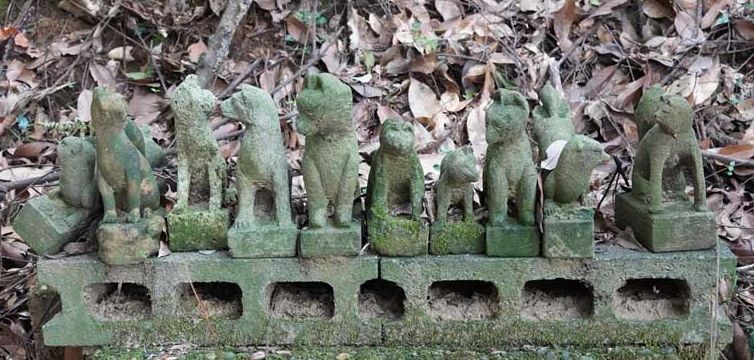 稲荷なので狐だらけですが、手作りなのかそれぞれデザインが異なり、個性があって面白い。金精様も石製であったり、木製だったり木の種類も様々です。問題なのは藪蚊の襲撃が凄すぎるので、夏の参拝はお薦め出来ません。