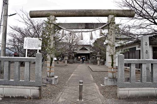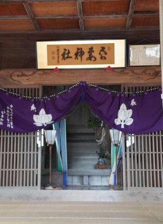 祭神は弟橘姫で、江戸砂子に「君去津吾妻大明神は即ち立花姫の霊社也」とあり、社殿にも日本武尊東征のみぎり相模から上総へ渡ろうとした時、海上にわかに荒れ海に投じた姫のお袖が数日後にこの近くの海岸に標着したのでこれを納めて吾妻神社を建てたとあります。