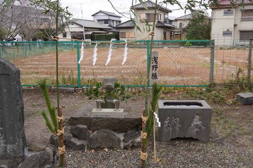 浅野様。江戸時代末期一八六七年に、二十五歳前後の浅野作造頼房が徳川恩顧の地である木更津を中心に同志を募って貫義隊の旗をあげ、官軍と戦いました。剣の腕が立つ浅野でしたが、最後は横田の寺で白兵戦の末、撃たれ亡くなりました。その後、官軍は吾妻神社近くに浅野を晒しました。
